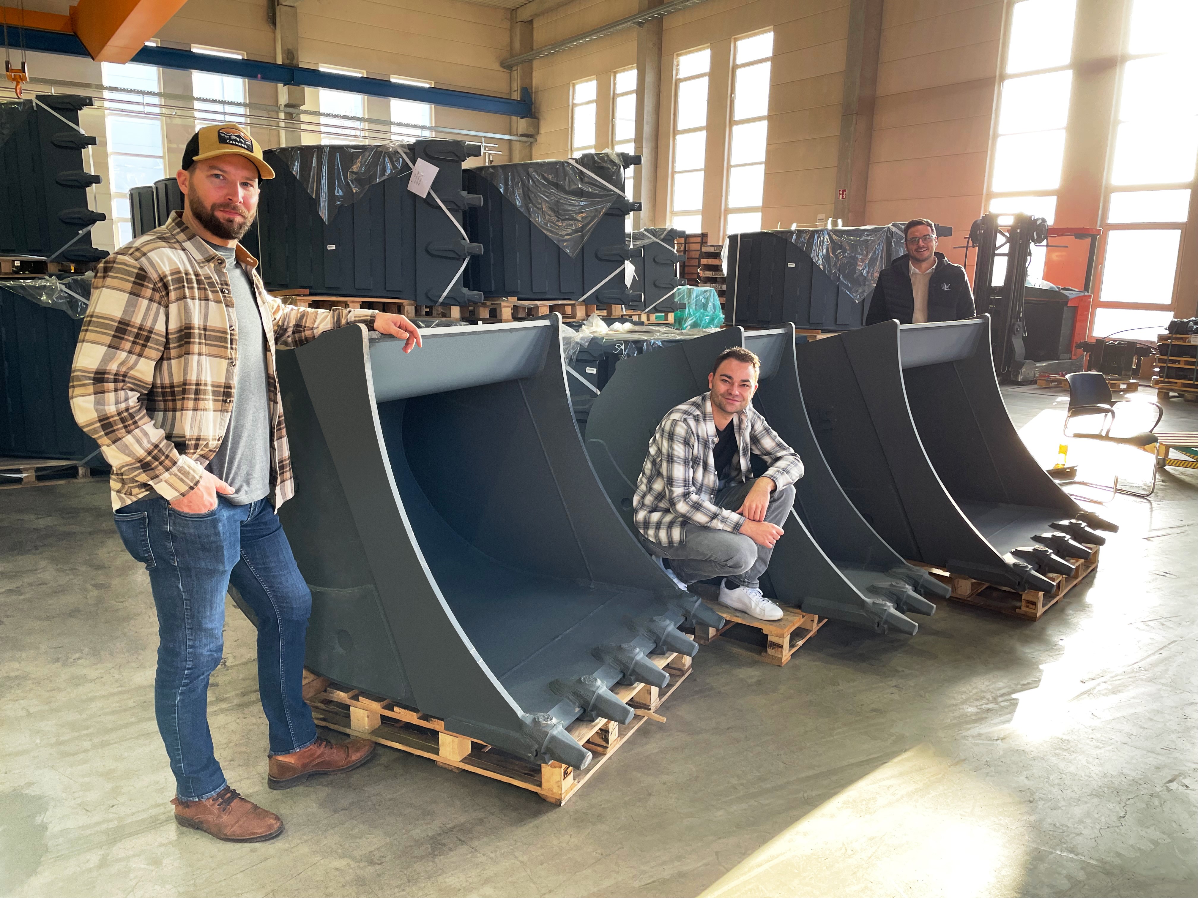 Foto: Michael Thoma, Daniel Hagedorn und Yannik Steil inmitten der LIS Baggerlöffel