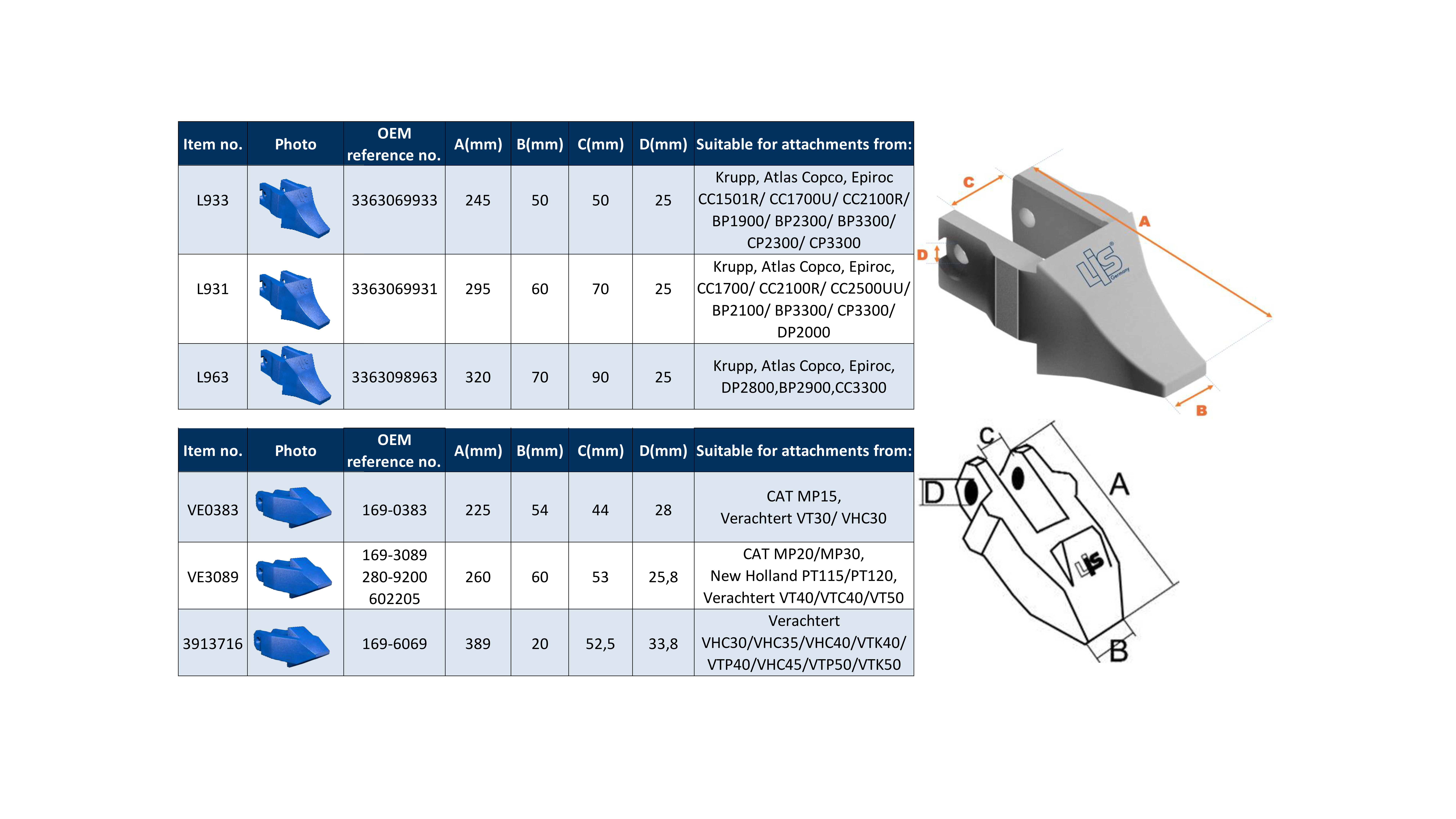 Note: These products are LIS® replacement parts. Mentioned original brand names (e.g., CAT®, Bofors®, Lehnhoff®) are used for compatibility identification purposes only. These are not original equipment manufacturer (OEM) parts.